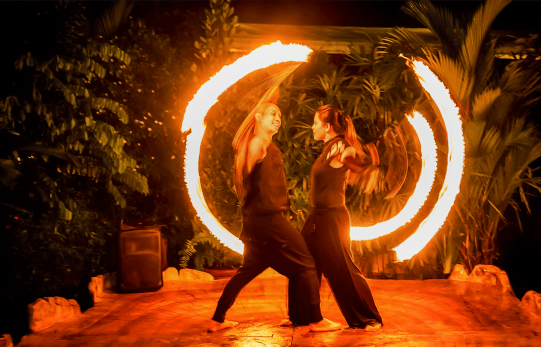 불을 삼키는 묘기, 화염 묘기, 그리고 리듬감 넘치는 안무가 어우러진 에너지 넘치는 문화 공연. 이 만다이 나이트 사파리 쇼는 야외에서 열리며, 나이트 사파리에서의 저녁 시간을 드라마틱하고 시각적으로 인상 깊은 시작을 선사합니다.