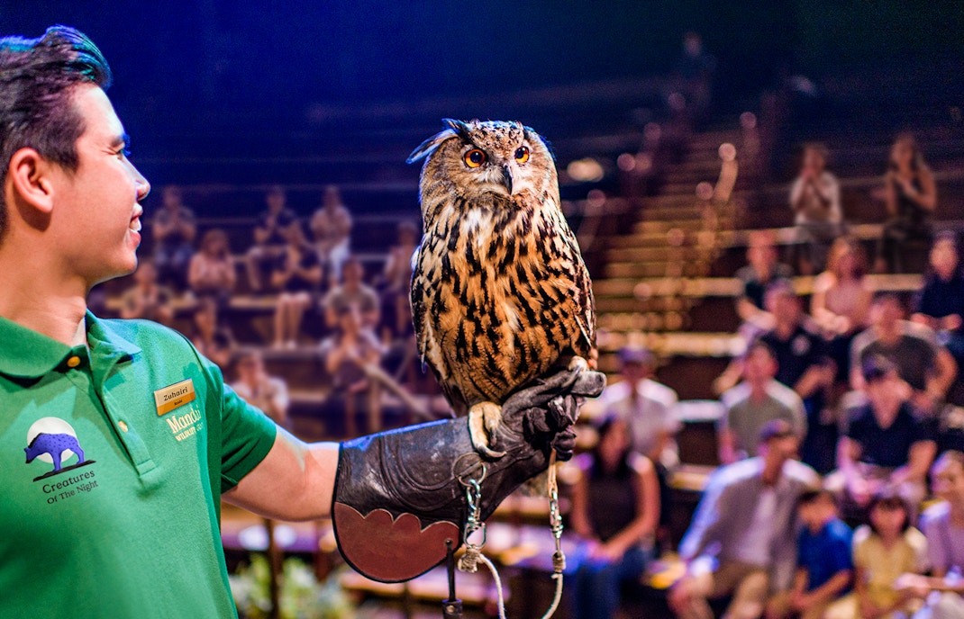 싱가포르의 대표 명소, 나이트 사파리 동물 쇼이 20분짜리 공연에서는 사향고양이, 너구리, 올빼미 같은 동물들이 자연스러운 야행성 행동을 보여주는 모습을 체험형 교육 프로그램 형식으로 만나보실 수 있습니다.